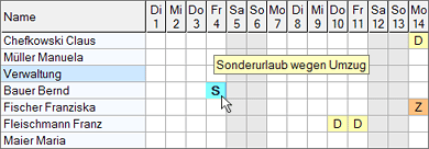 Einträge mit Kommentaren werden in Fettschrift angezeigt. Vorhandene Kommentare können Sie anzeigen, indem Sie die Maus auf den entsprechenden Eintrag bewegen.